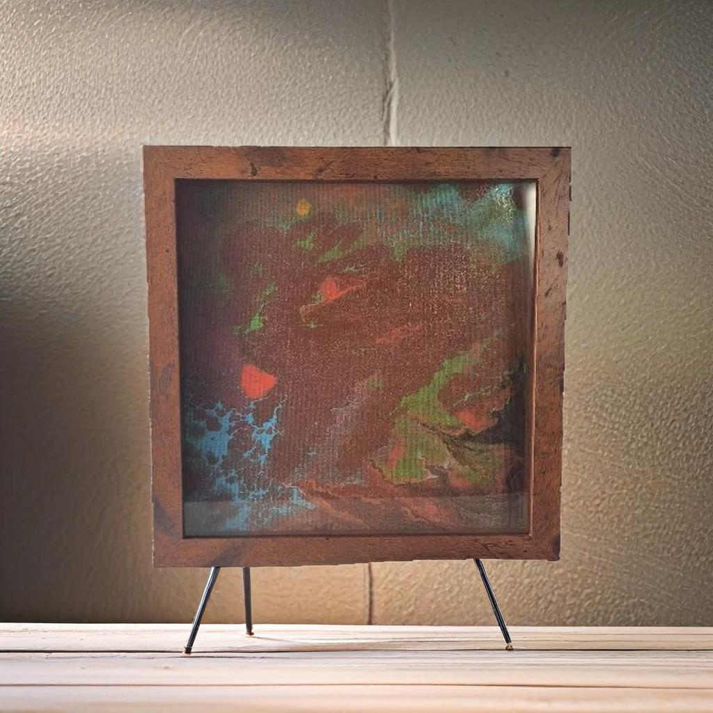 Rust, teal, and ember tones collide in a tide of texture. It feels like earth, water, and fire taking a breath together. Compact, atmospheric, ready to hang.