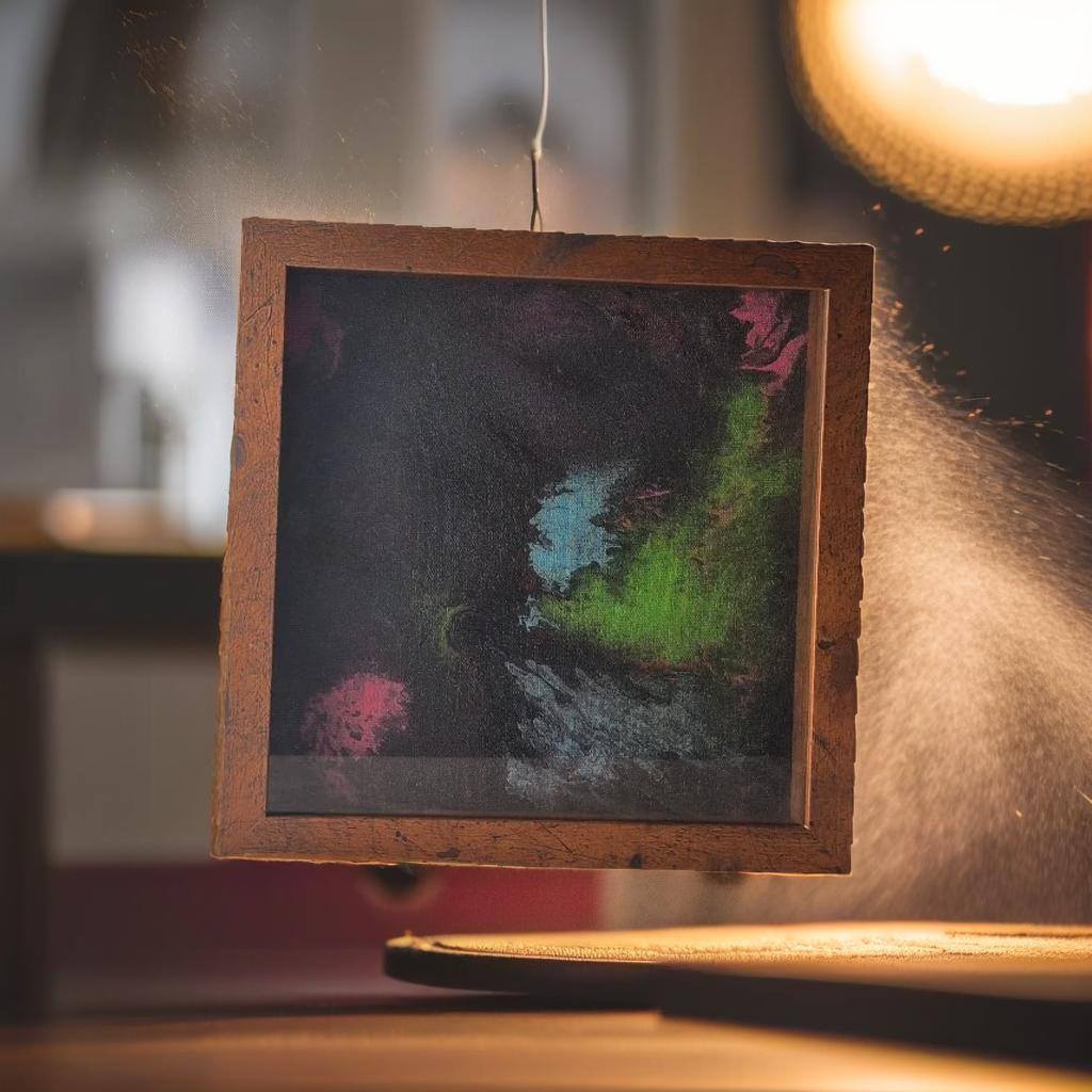 Neon green and hot pink flare against deep-space black. Playful and electric—this one winks from across the room. A modern color pop.