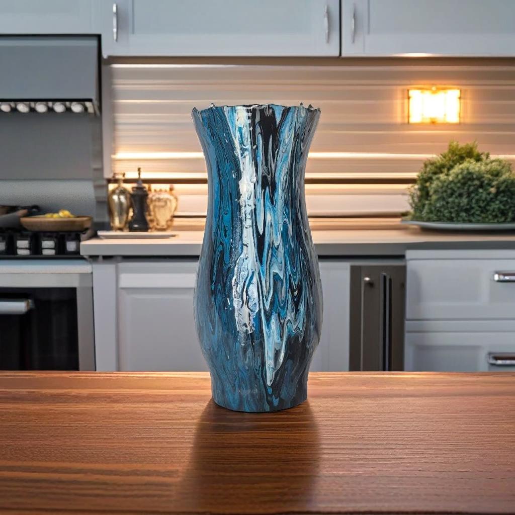 Cool blues swirl with silvery streaks, like waves brushing against moonlit ice. It’s crisp, fresh, and just dramatic enough to wake up a shelf. Perfect if your style leans clean with a hint of mystery.